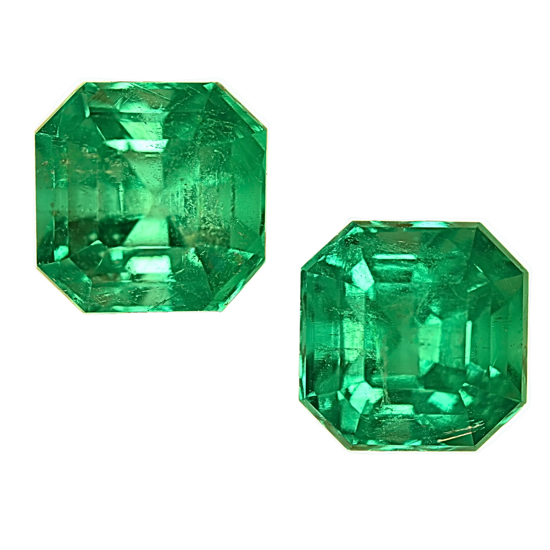 This exceptional pair of Colombian emeralds totals 8.40 carats of natural beauty and prestige. Comprising...