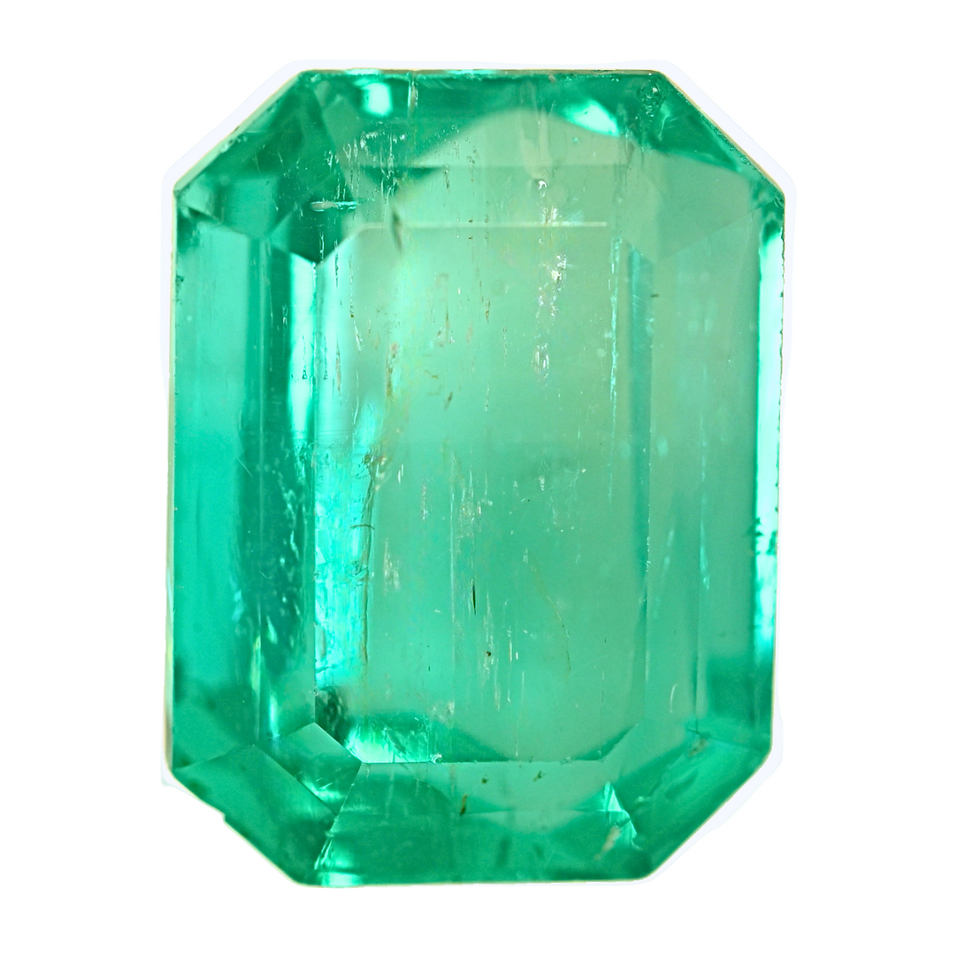 A radiant 0.67 carat Colombian emerald displaying the signature deep green brilliance these stones are...