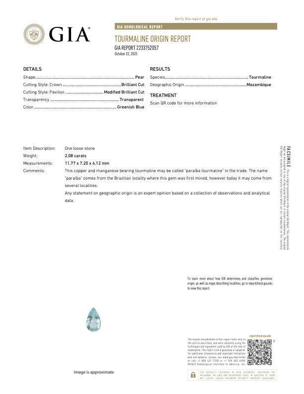 2.08 Carat Paraiba Tourmaline - GIA