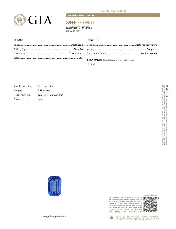 Meet your new favorite gemstone obsession—this stunning 4.55 carat blue sapphire, certified by GIA. With its gorgeous deep blue color and impressive size, this beauty is ready to turn heads and steal hearts. Whether you're building an enviable collection or dreaming up the perfect custom piece, this sapphire brings the sparkle and sophistication you've been craving. A gem that's as fun to own as it is gorgeous to admire.